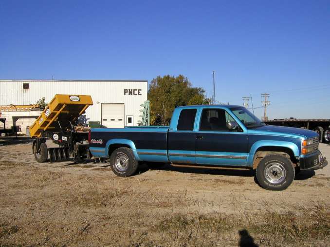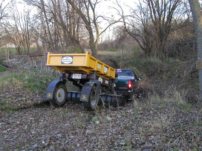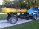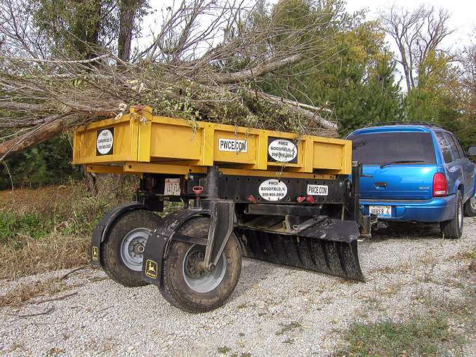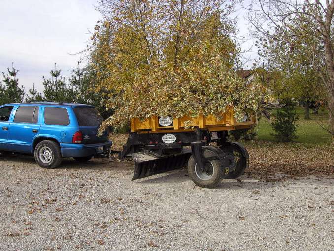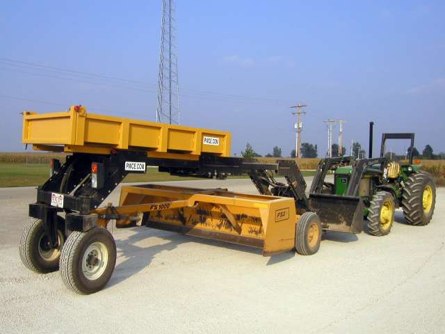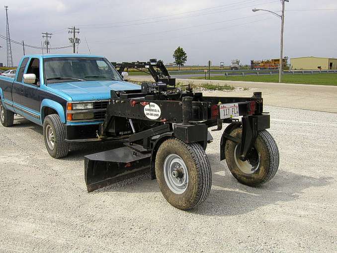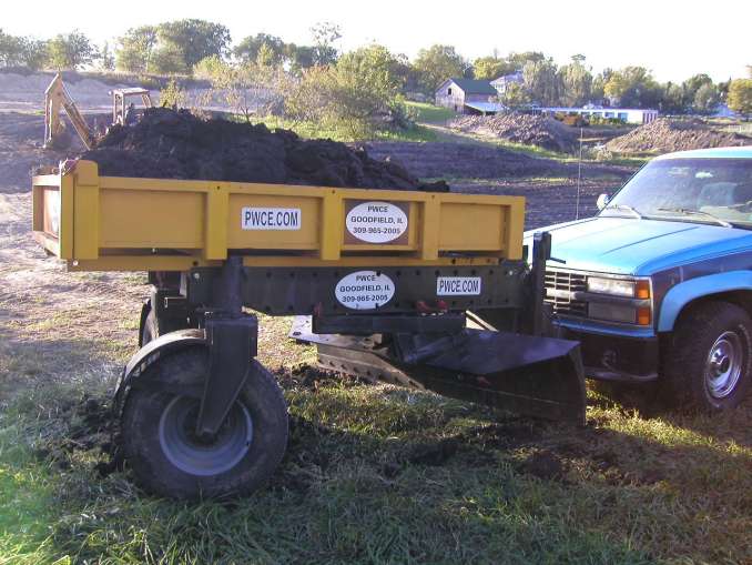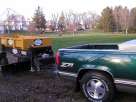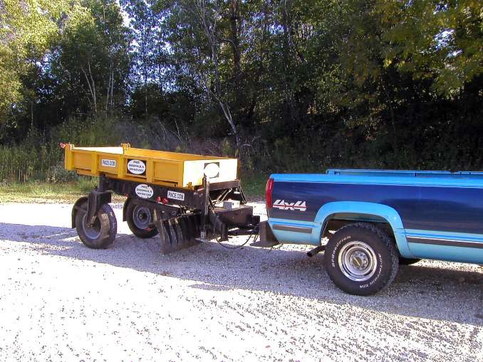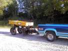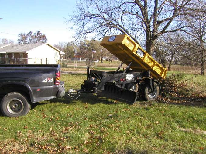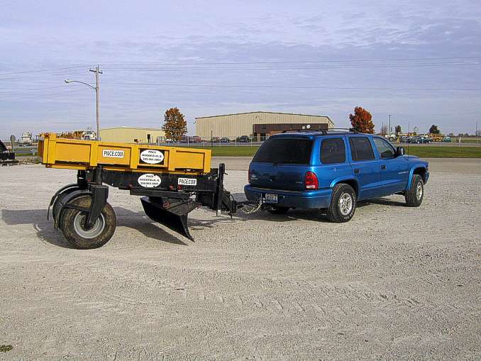 CCA 100 with blade and 2yd Dump Box pulled by a Dodge Durango. |