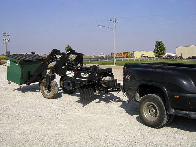CCA 150 with drag, 2 yd. dump box attached using PWCE Quick-Tach System. |