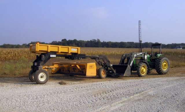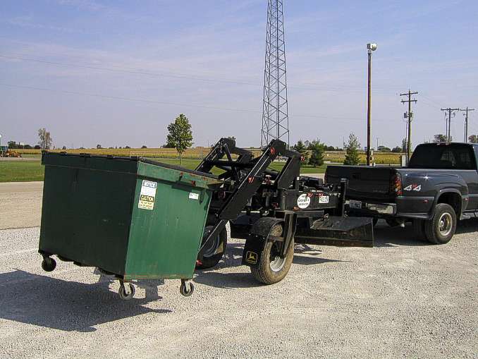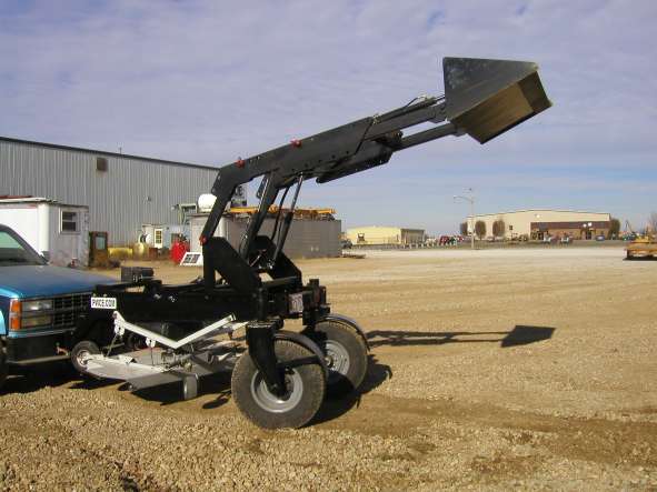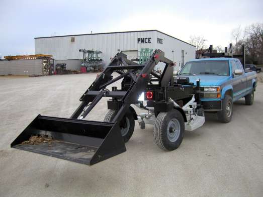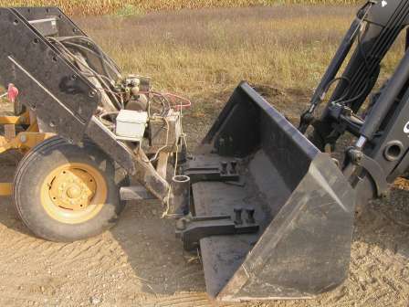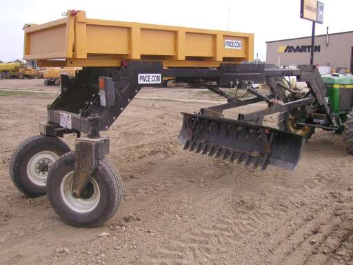 CCA 150 with box scraper, 2 yd. dump box attached using PWCE Quick-Tach System. |