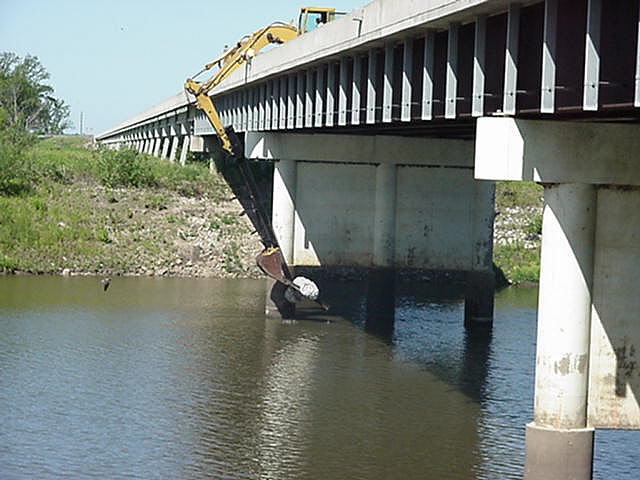 Cat 225B with a 16' Extendavator, Special Rock Roll Off Bucket. Carrying rock bags that weigh approximately 3500-4000lbs. with no counterweight. Photo provided by Dean Machinery.