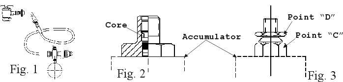 | (H) | When finished pre-charging accumulator, turn "T" handle all the way out on gas chuck, then open bleed valve. |