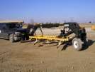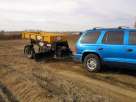 CCA 100 with blade and 2yd Dump Box pulled by a Dodge Durango. |