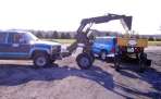 CCA 100 with blade and 2yd Dump Box. JD 110 Backhoe Loader with PWCE Extendable. |